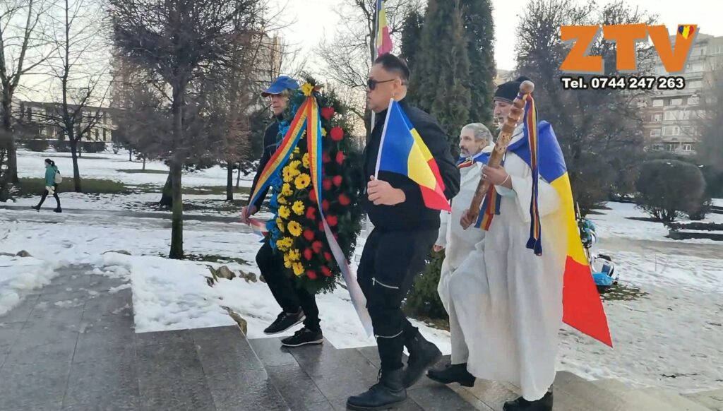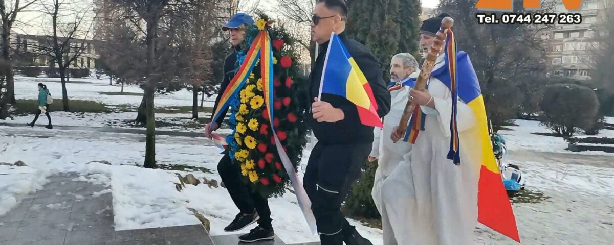 title="Protestatarii au depus o coroana la statuia lui Avram Iancu din Baia Mare"
