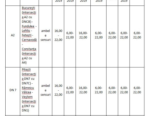 transporturilor si ministrului afacerilor interne nr. 1249 – 132/2018, circulaţia vehiculelor rutiere cu masa totală maximă autorizată mai mare de 7,5 tone altele decât cele destinate exclusiv transportului de persoane, este interzisă în zilele de 25 si 26 aprilie 2019 (Vinerea Mare si ziua premergătoare), 27, 28 si 29 aprilie 2019 (prima si a doua zi de Paște si ziua premergătoare), 30 aprilie 2019 (zi libera conform HG nr. 171/2019) si in ziua de 1 Mai 2019.