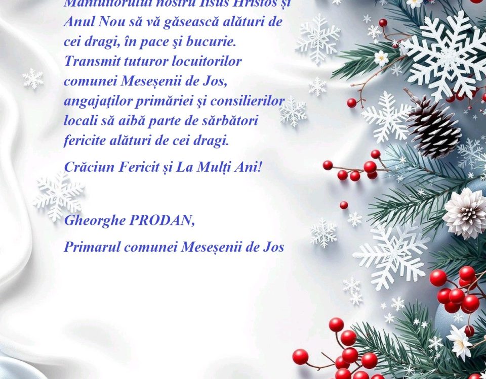 Gheorghe PRODAN, Primarul comunei Meseșenii de Jos: Crăciun Fericit și La Mulți Ani!