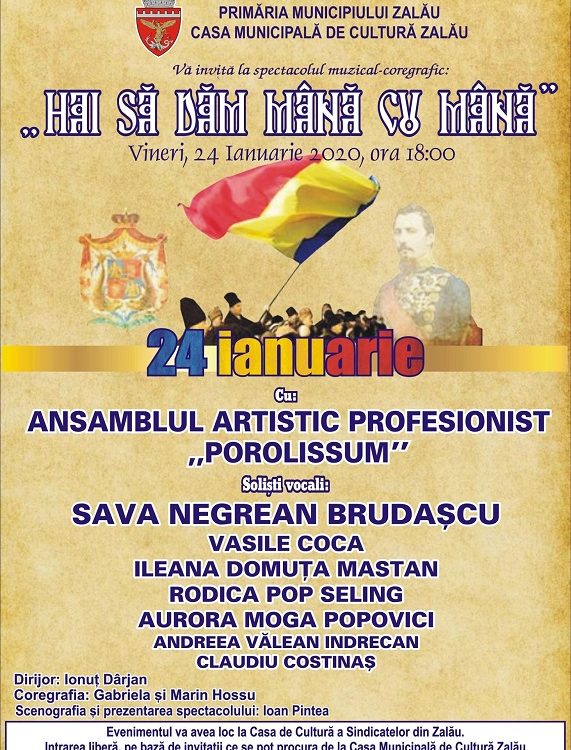 Primăria municipiului Zalău în colaborare cu Casa Municipală de Cultură şi Ansamblul Porolissum organizează duminică, 24 ianuarie, de la ora 17, spectacolul „Hai să dăm mână […]