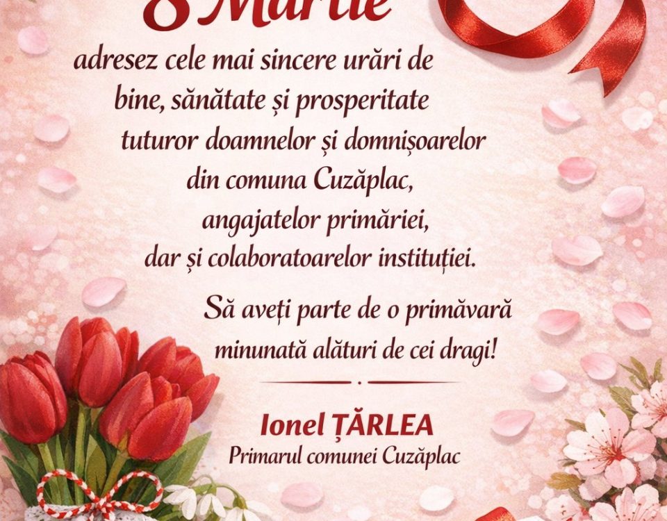 Ionel ȚÂRLEA Primarul comunei Cuzăplac: Să aveți parte de o primăvară minunată alături de cei dragi!